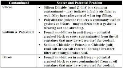 2. Jika terdapat Penambahan Kontaminan di Oli (Kontaminasi) maka Pengurangan Viskositas disebabkan oleh bahan bakar mesin, pendingin mesin / pelumas dan aditif oli sedangkan Penambahan Viskositas disebabkan oleh emulsi air, udara yang terikut dan zat anti beku di oli